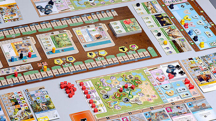 Kern des Spiels sind rund 250 Karten mit Tieren, Spezialisten, Sondergehegen und Artenschutzprojekten, jede mit einer besonderen Fähigkeit. Mit ihnen steigert ihr die Attraktion und den akademischen Ruf eures Zoos und sammelt Artenschutzpunkte. Für die Umsetzung eurer Pläne habt ihr alle je ein Set an Aktionskarten, mit dem ihr euren Spielverlauf steuert.