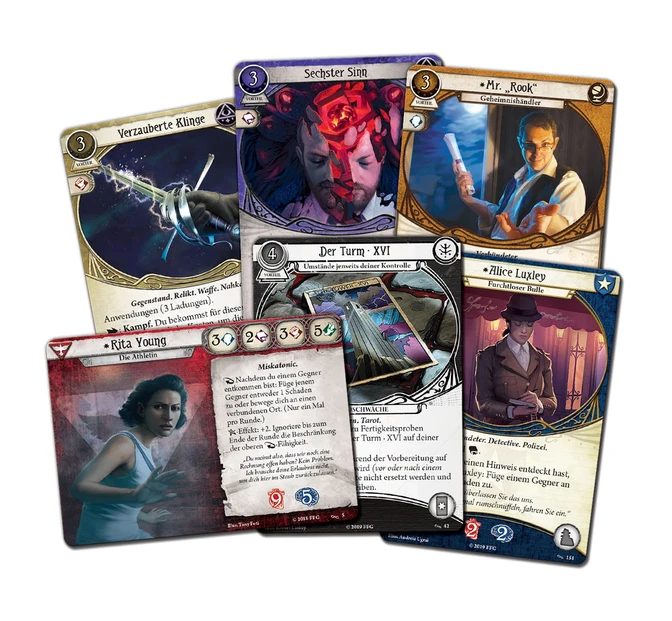 - 6 neue Ermittler und über 180 neue Spielerkarten