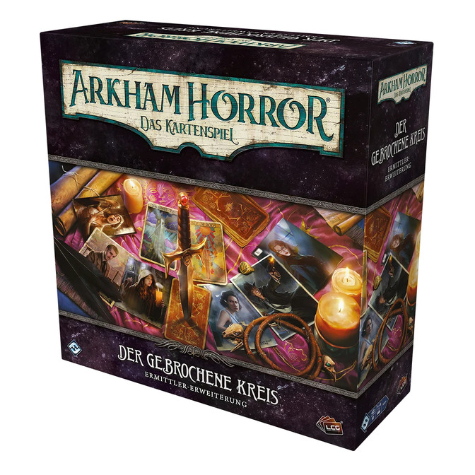 Diese Ermittler-Erweiterung zum Expertenspiel Arkham Horror: Das Kartenspiel enthält 6 Ermittler und alle Spielerkarten aus dem Zyklus Der gebrochene Kreis. Sorgt als die Psychologin Carolyn Fern dafür, dass eure Verbündeten bei Verstand bleiben; geht als der Privatdetektiv Joe Diamond übernatürlichen Mysterien auf den Grund; löst als der Millionär Preston Fairmont all eure Probleme mit seiner dicken Brieftasche; verhindert als die zweifelnde Kultistin Diana Stanley schreckliche Rituale; bleibt als die Athletin Rita Young Schwierigkeiten immer einen Schritt voraus oder rennt schnurstracks auf sie zu; und zapft als das Showgirl Marie Lambeau das Potenzial ihrer mystischen Blutlinie an.Mit der Ermittler-Erweiterung Der gebrochene Kreis könnt ihr neue Ermittlerdecks bauen oder eure bereits bestehenden neu gestalten und mit ihnen nach Belieben Szenarien und Kampagnen von Arkham Horror: Das Kartenspiel bestreiten.