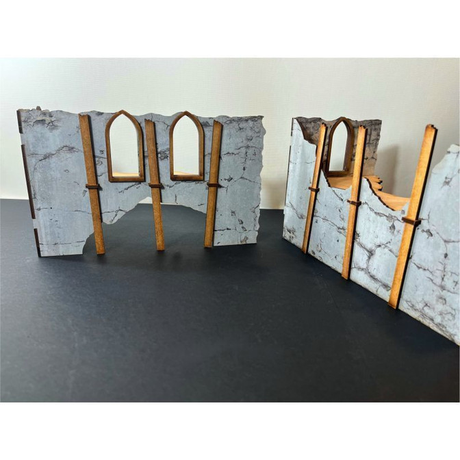 This pack contains: - 2 ruins of 9" x 5" x 9.5", pre painted ready to assemble and play - Themed printed translucent windows Designed to be able to be assembled and disassembled without the need for glue, it makes it a unique product in the speed of assembly (less than 5 minutes), as well as in the ability to be stored and transported in a minimum space. Create balanced game tables for your warhammer 40k games and take the game to a higher level, with scenery optimized for the game rules, as well as fully compatible with the scale of the miniatures in your warhammer 40k collection. A scenery for Warhammer 40k, ready to build and play, with which you can take your games to a higher level