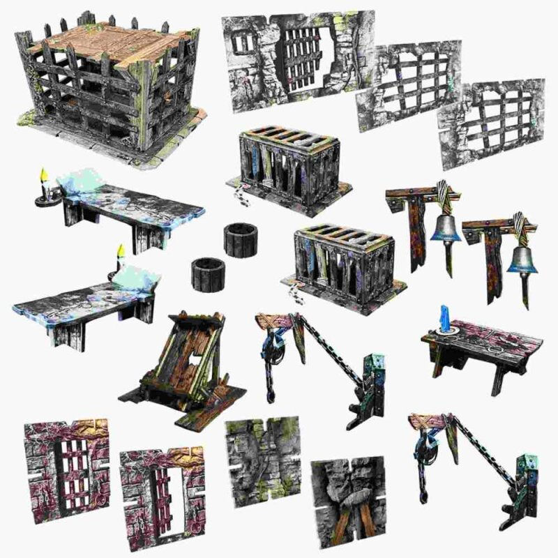 This pack groups together the Prison and Torture Chamber themed stretch goals from the Dungeon Terrain stretch goals.