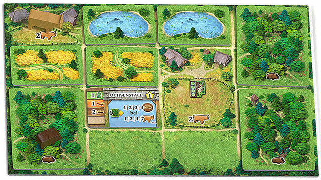Dabei ist wichtig, dass ihr eure beiden Rohstoffräder und deren Produktion richtig vorausplant. Denn oft wird automatisch produziert, wenn ihr Rohstoffe erhaltet, sodass manche Rohstoffe gleich wieder verbraucht sind.