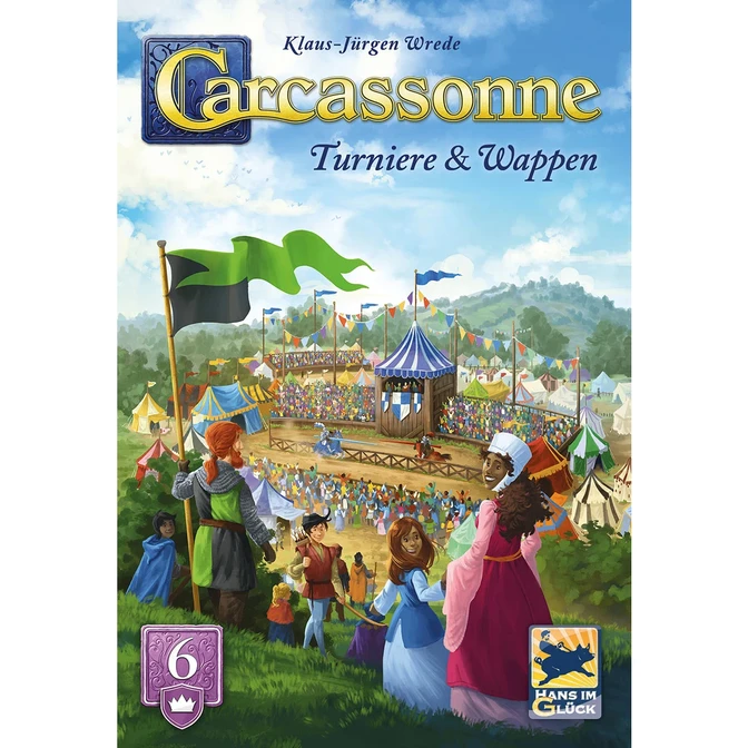 In der 6. Erweiterung Turniere & Wappen für das preisgekrönte Familienspiel Carcassonne (Spiel des Jahres 2001) nehmt ihr am großen Königsturnier teil. Nominiert eure fähigsten Meeple und staubt Preise wie Turnier-Plättchen ab. Die Krone markiert das nächste von 3 Turnieren, die Reisende, Ritter oder Bäuerinnen auszeichnen. Nominiert eure Meeple mit dem Emblem eures Hauses und steigert eure Siegeschancen. Bei einem Sieg wird euch zu Ehren sogar eine Statue erbaut.