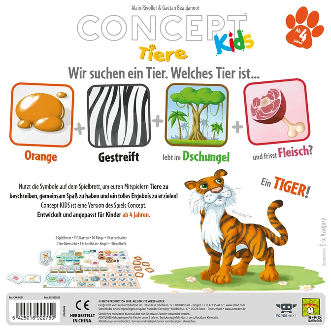 Concept Kids – Tiere ist eine speziell für Kinder ab vier Jahren entwickelte, kooperative Version des bekannten und zum Spiel des Jahres nominierten Spiels Concept.