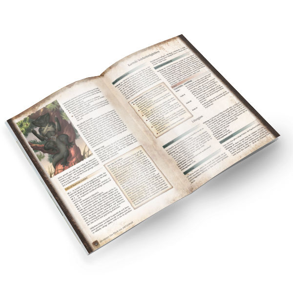 Auf ins Abenteuer! So heißt die Reihe von Kurzabenteuern, die zusammen mit spielfertigen Charakteren, einigen Regelerweiterungen und einer Kurzbeschreibung des Abenteuerschauplatzes geliefert werden.