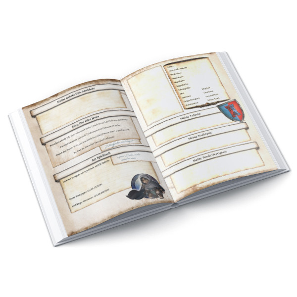 Mit abwechslungsreichen Fragen, Freitextfeldern und kniffligen Entscheidungen wie "Ich würde am liebsten besuchen: Das Wirtshaus zum Schwarzen Keiler, die Stadt des Lichts oder die Salamandersteine" hältst du lustige Anekdoten, spannende Erlebnisse und unvergessliche Weggefährten fest.