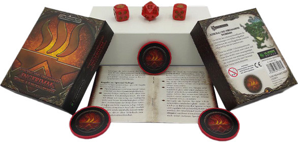 Dieses Set enthält 3 Schicksalspunkte mit dem Symbol der Gottheit, einen Götter- und einen Kha-Würfel, einen zwanzigseitigen Würfel sowie eine Anleitung zur Nutzung des Spielmaterials für eine Fokusregel zum Thema Schicksalspunkte.