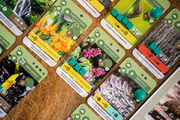 In Erde baut ihr euer eigenes Ökosystem in einem Raster von 4 mal 4 Karten auf. Die Regeln von Erde sind schnell erklärt, und bei über 360 Karten und 25000 Startaufstellungsmöglichkeiten ist der Wiederspielreiz sehr hoch. In jedem Spiel gibt es etwas Neues zu entdecken und andere Wege Punkte zu machen. Erde ist ein Spiel, in dem es euch nie langweilig werden wird, denn selbst wenn ihr grade nicht am Zug seid, dürft ihr die gewählte Aktion des aktiven Spielers in einer abgeschwächten Form ebenfalls ausführen. Und auch die Effekte, die einer Aktion zugeordnet sind werden am Ende jedes Zuges für alle Mitspieler ausgelöst. So seid ihr permanent mitten im Spiel und überlegt und grübelt was ihr als Nächstes machen möchtet. Die Aktionen sind Thematisch ins Thema verwoben so kann zwischen Pflanzen, Wässern, Wachsen, Kompostieren wählen umso seine Engine und sein Raster zu optimieren. Erde spricht Familien- und Vielspieler gleichermaßen an und besticht dazu mit einer gemessen an der Tiefe des Spiel relativ kurzen Spielzeit von 60-120 Minuten.