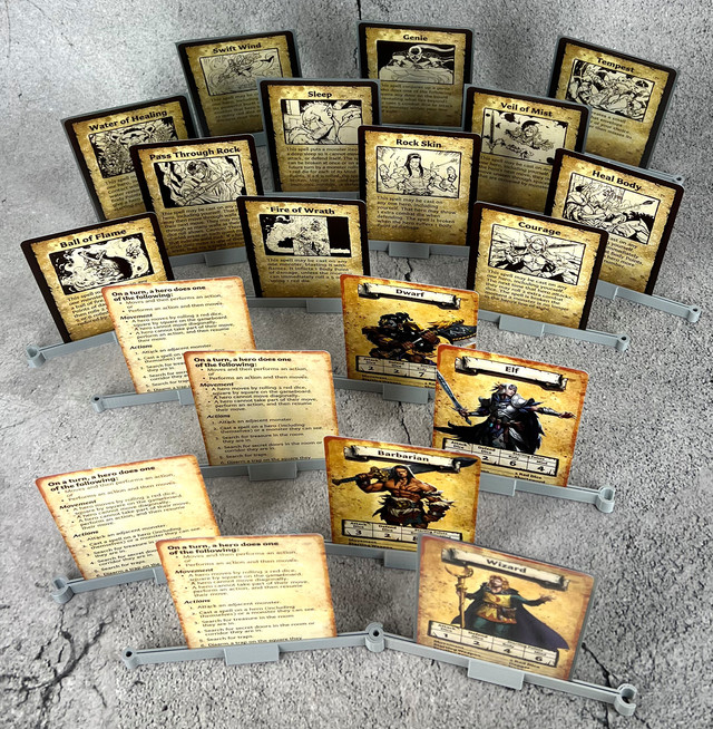 - Bietet Platz für 20 Spielkarten von HeroQuest wie Zaubersprüche, Ausrüstungsgegenstände, Heldenkarten und Regelübersichten.
