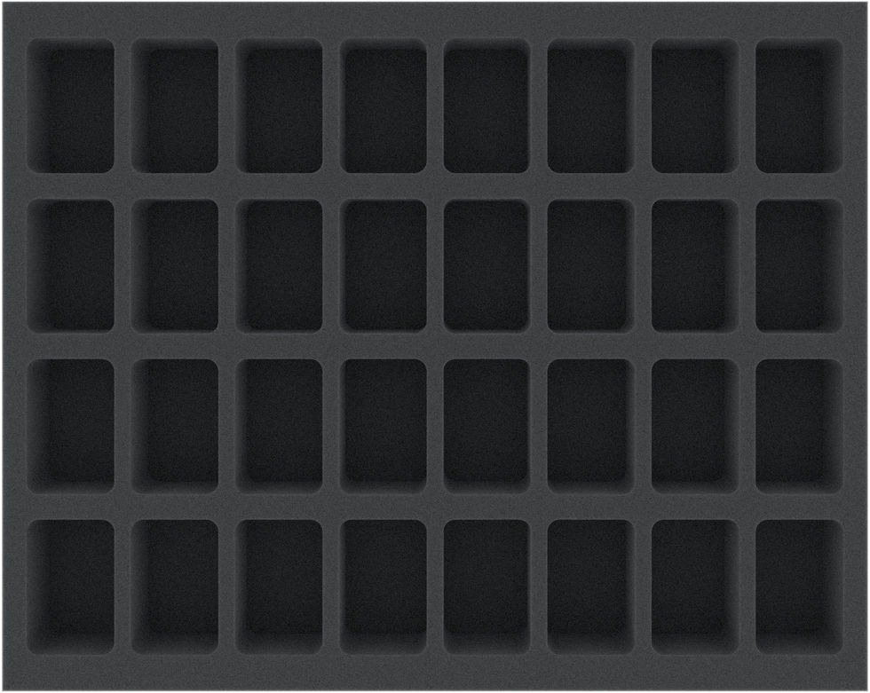 45 mm hohe Feldherr Full-Size Schaumstoffeinlage mit 32 Fächern. Universell geschnittene Fächer bieten optimalen Schutz für Miniaturen aus den verschiedensten Spielsystemen.