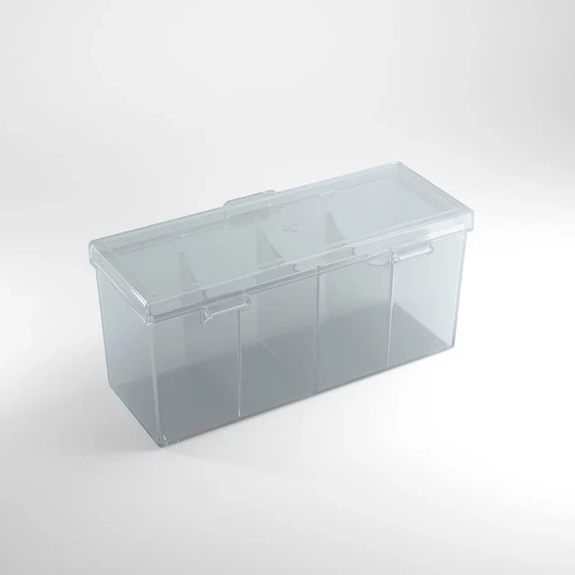 Komplette Decks, Würfel, Tokens oder 320 doppelt gesleevte Karten: DieFourtress 230+ Clear bietet vielen Dingen soliden Schutz! Die robuste Box ist in fünf verschiedenen halbtransparenten Farben erhältlich, damit man den Inhalt leicht identifizieren kann. Das integrierte Schloss hält sie sicher geschlossen, während zwei Innenwände entfernt werden können, um größere Fächer zu schaffen. Die Boxen sind stapelbar und somit sowohl perfekte Reisebegleiter als auch eine großartige Aufbewahrungslösung für zu Hause.