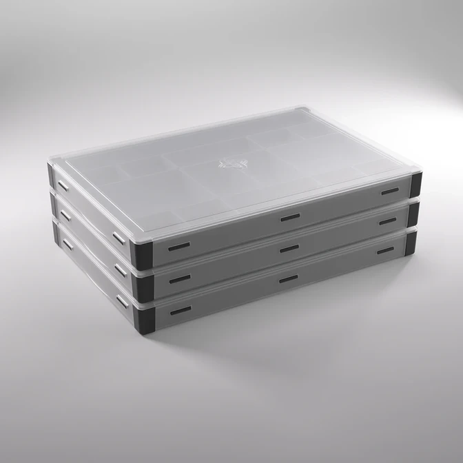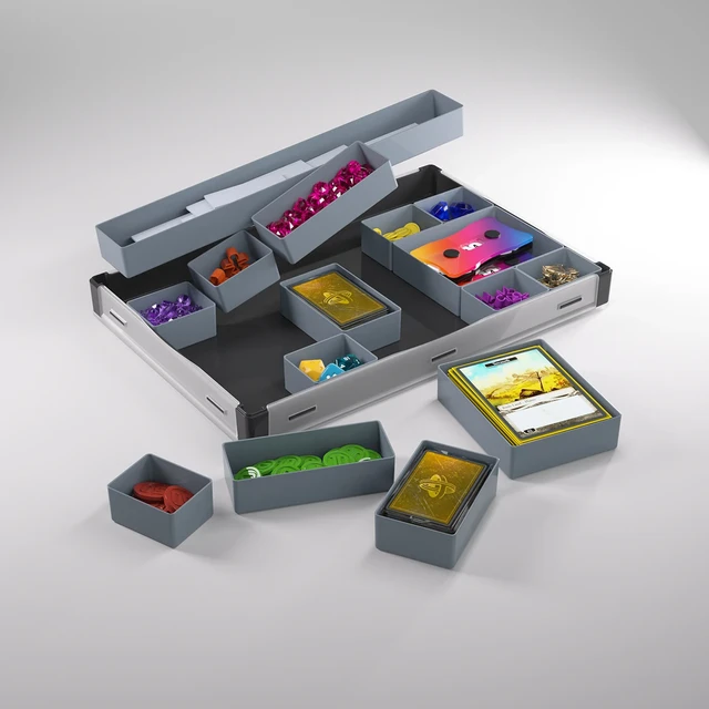 Alle Fächer sind vollständig herausnehmbar und können mit Fächern aus dem original Gamegenic Token Silo und Token Silo Cards Add-on ausgetauscht werden, was maximale Flexibilität und zusätzliche Anpassungsmöglichkeiten bietet.