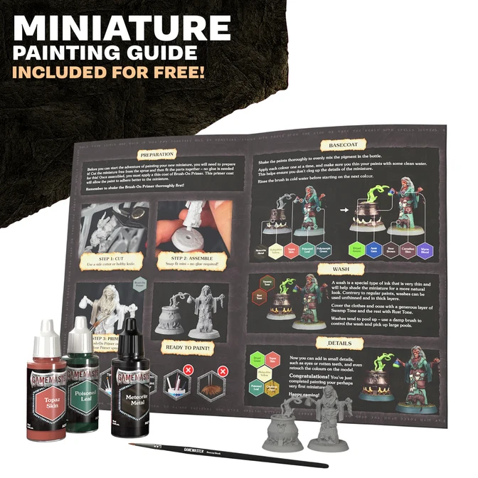 Das GameMaster: Wilderness Adventures Rollenspiel-Farbset enthält 15 Farben, bestehend aus 10 leuchtenden Farben, 2 Effektfarben, 1 Metallic-Farbe und 2 vielseitigen Waschungen – alle speziell ausgewählt, um zum Wildnis-Thema zu passen. Außerdem erhaltet ihr eine Malanleitung, einen GameMaster: Drybrush und einen Kessel mit Schnappverschluss und eine Hexenminiatur – GRATIS!