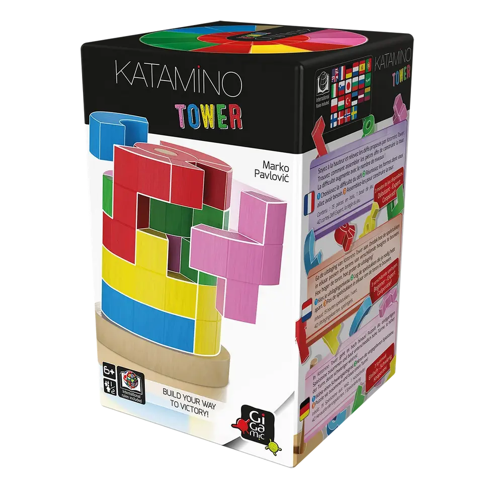 Katamino Tower katapultiert den Puzzleklassiker Katamino in eine neue Dimension! In über 40 verschiedenen Herausforderungen gilt es, die einzigartigen Holzteile zu einem Turm mit mehreren Ebenen zusammenzubauen. Dabei steigt der Schwierigkeitsgrad immer weiter an. 3 verschiedene Spielmodi sorgen für viel Abwechslung. Werdet ihr den Turm auch auf der höchsten Stufe bezwingen können?