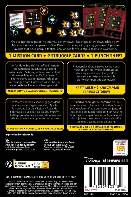 Verfeindete Streitkräfte treffen in einem dramatischen Entscheidungskampf aufeinander! Sabotage Showdown enthält ein neues Missionsset für Star Wars™: Shatterpoint, das mit neuen Aufgabenverteilungen eure Einsatzteams vor besondere taktische Herausforderungen stellt.