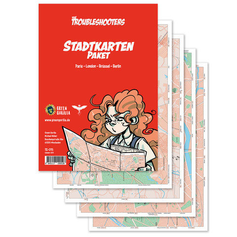 In den 1960ern war man noch nicht mit Handy und Google-Maps un-terwegs. Um sich dennoch überall zurecht zu finden, stecken in diesem Stadtkarten-Paket die 60er-Jahre-Versionen der Stadtpläne von Paris, London, Brüssel und Berlin. Auf den Rückseiten finden Abenteuer-Reisende eine Weltkarte mit dem kompletten Streckennetz der Fluglinie AIR MAJESTIQUE.